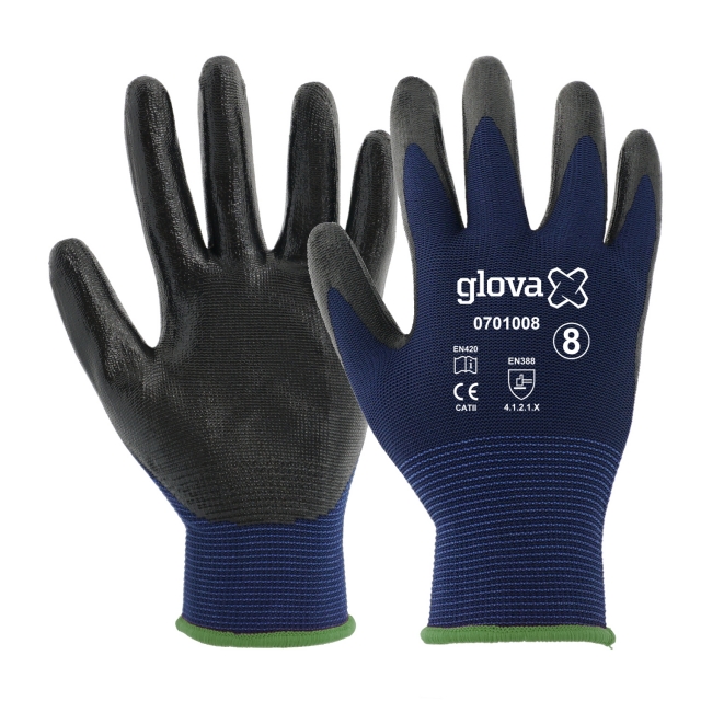 Luva com suporte em malha de poliéster revestida a nitrilo
